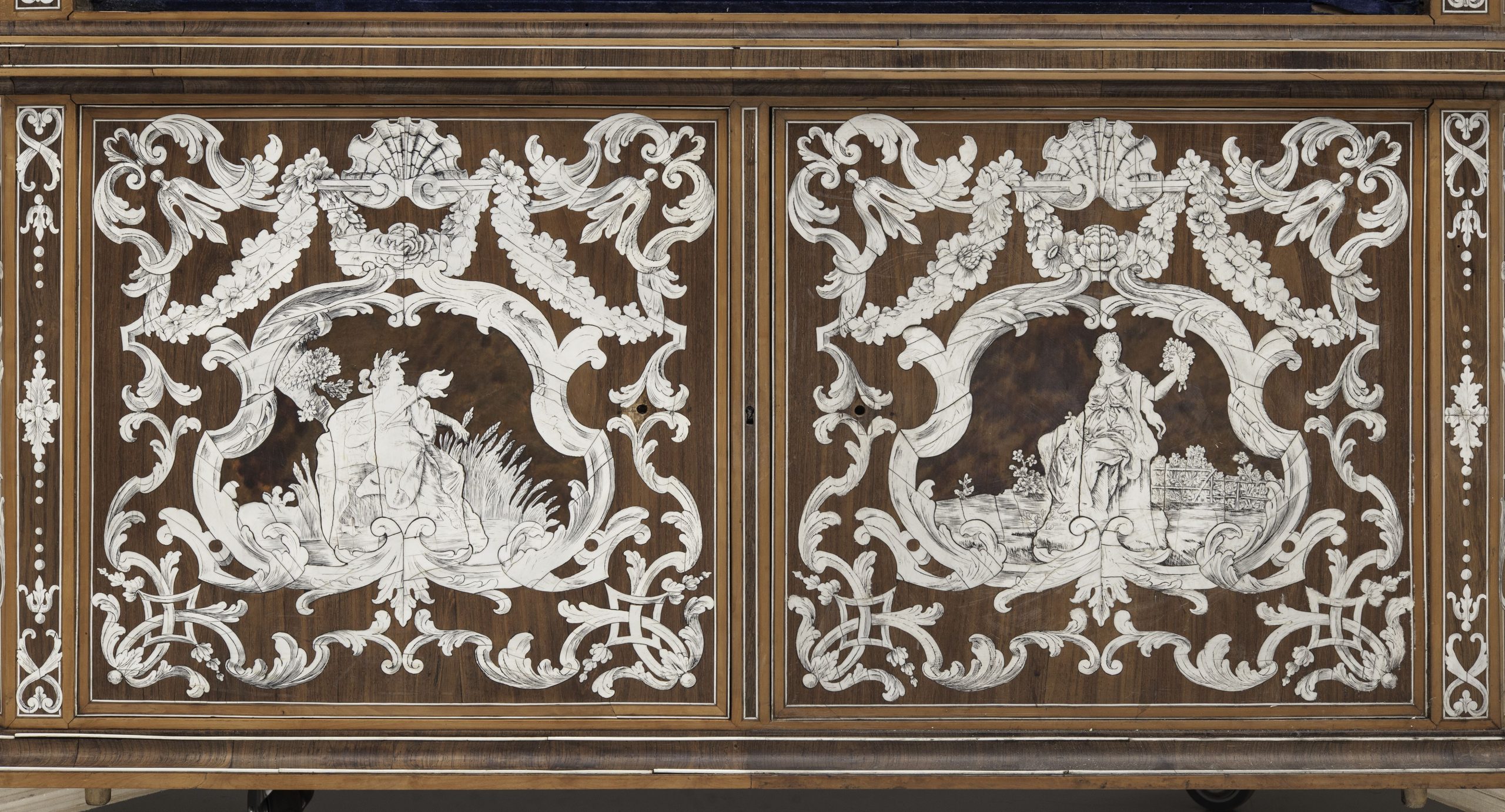| Materia e Tecnica | Legno intarsiato / avorio inciso / vetro |